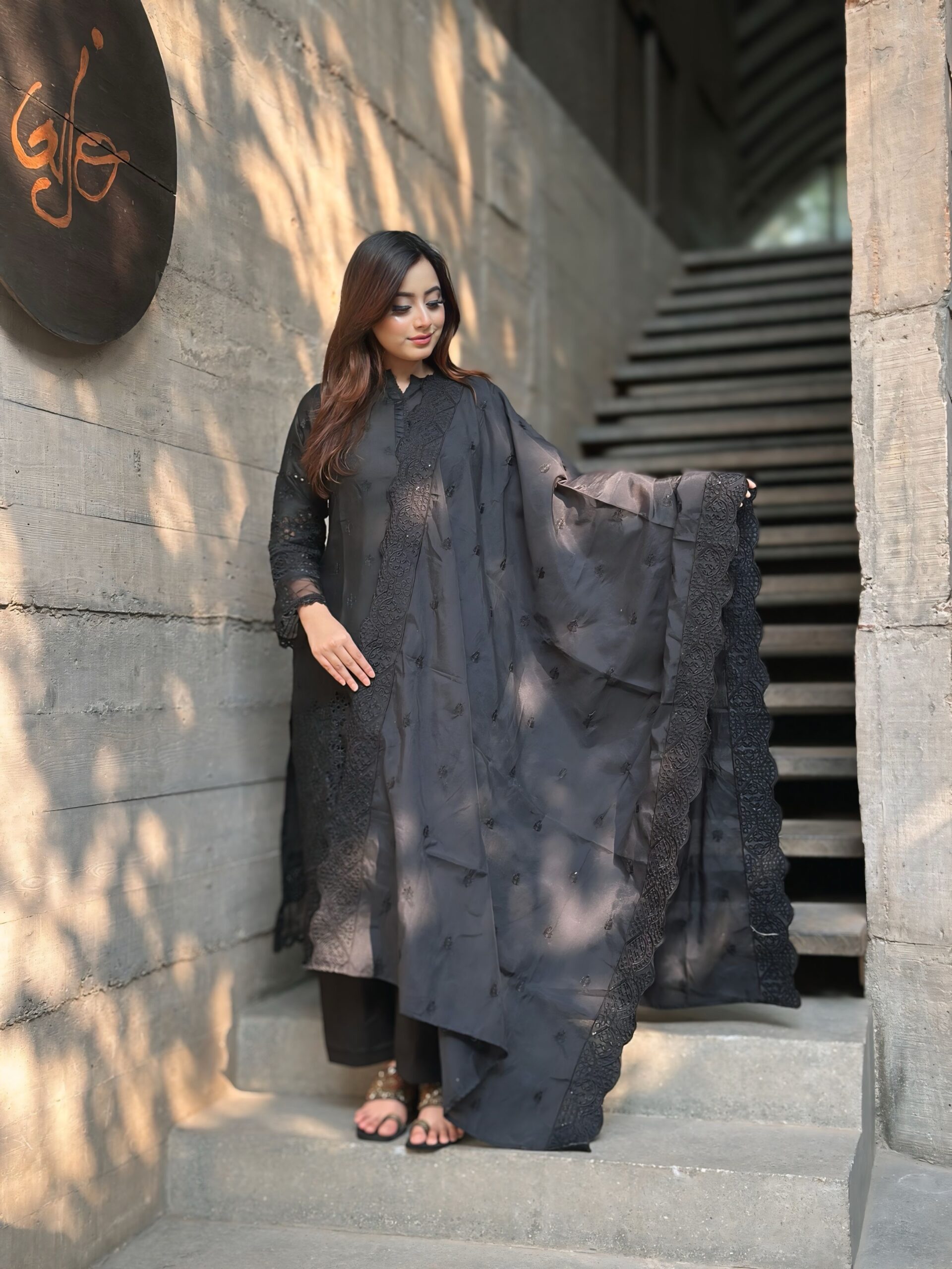 ✅ওড়না অর্গানজা কটন-এমব্রয়ডারি কাজ করা।