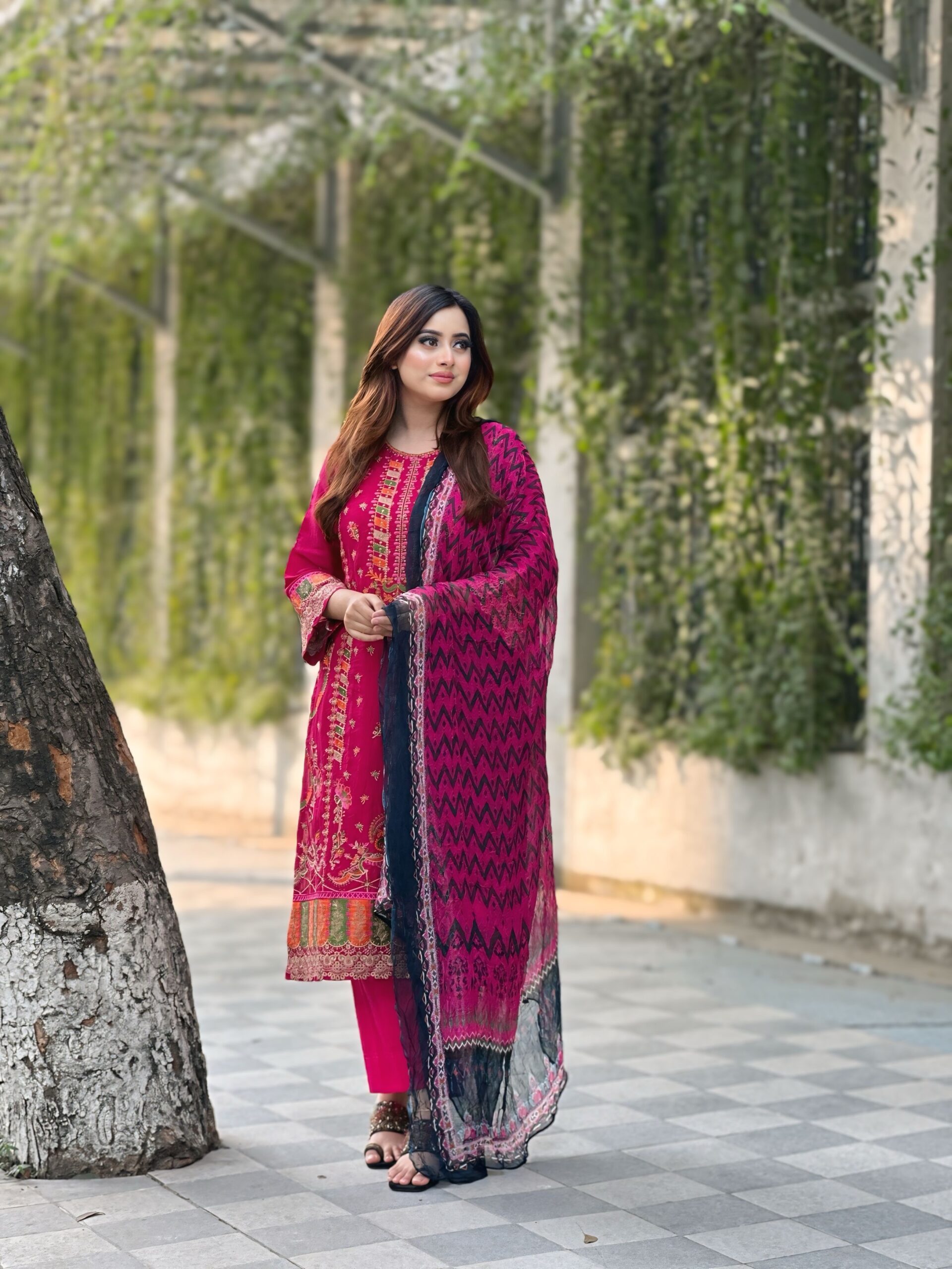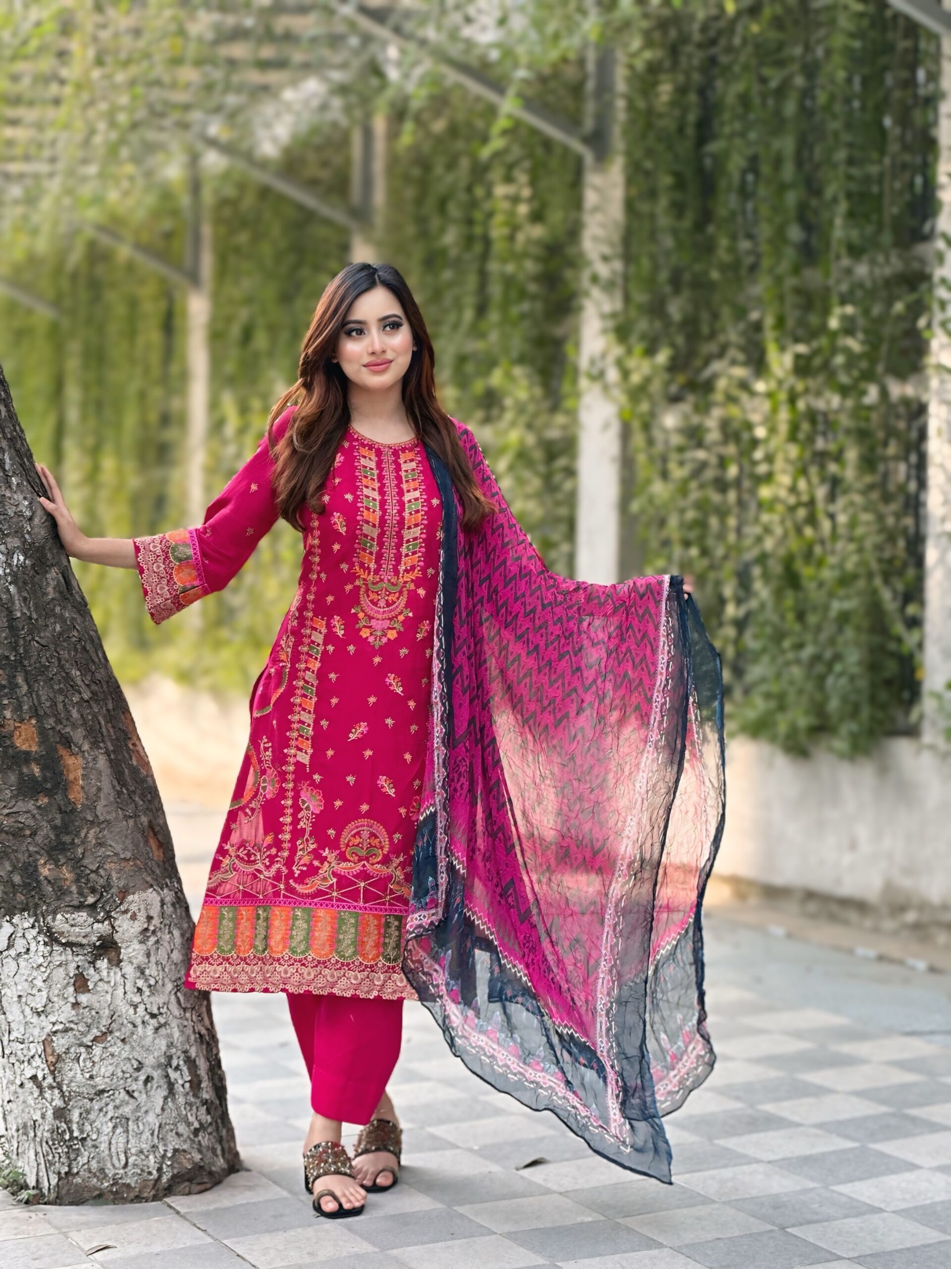 ওড়না অর্গানজা কটন-এমব্রয়ডারি কাজ করা।